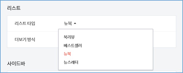 Step4. 글 리스트 표시형태를 선택해줍니다. "뉴북"으로 선택 합니다.