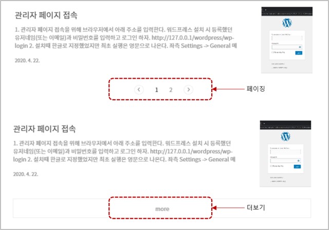 *더보기방식 : 페이징(Paging) (*더보기방식으로 지정해줄 수 도 있습니다.)